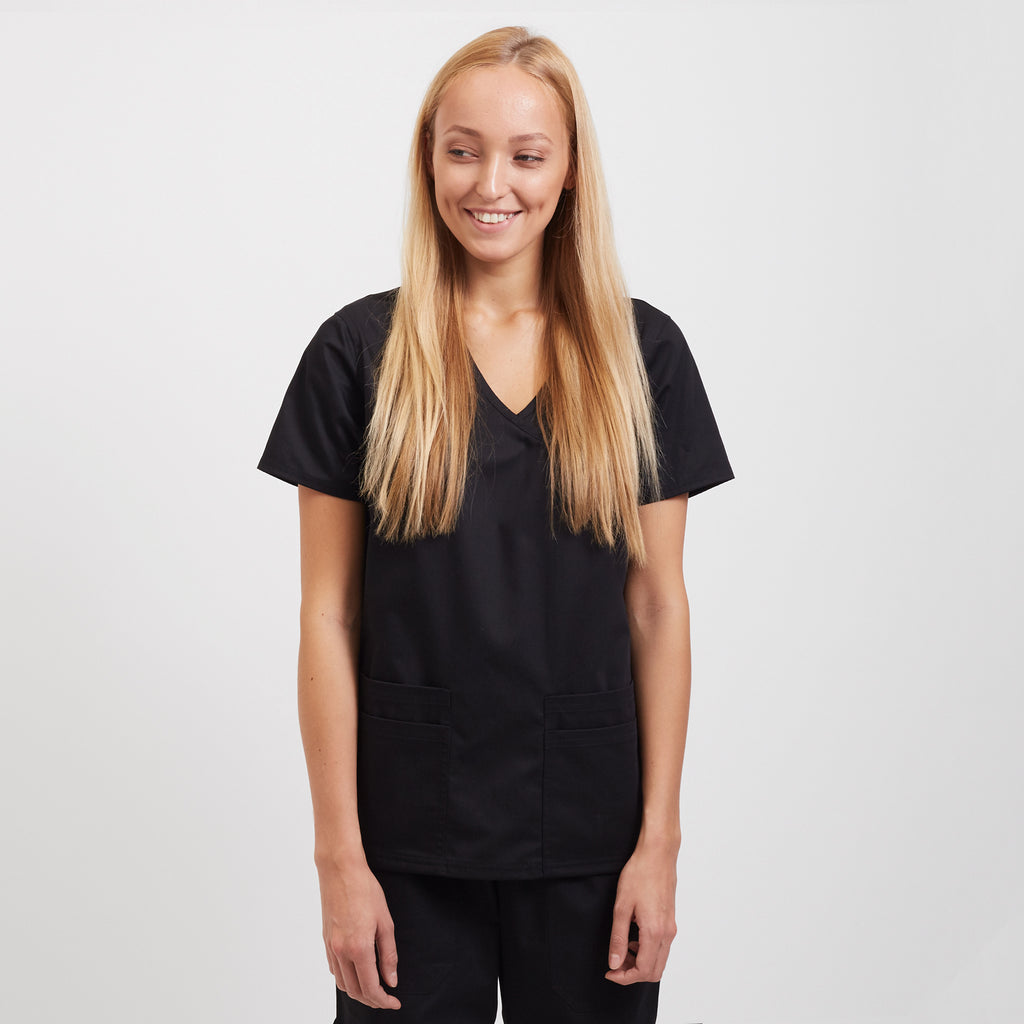 Fabric: Our slightly thicker weight creates a more luxurious feel than your typical uniform. Its majority cotton composition allows for breathable comfort while its polyester content allows for easy care and minimal wrinkling.